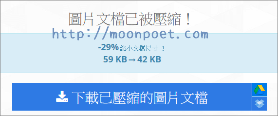 ▼ 在壓縮過後會顯示出壓縮完成後的成果,越大的圖檔能壓的越小。