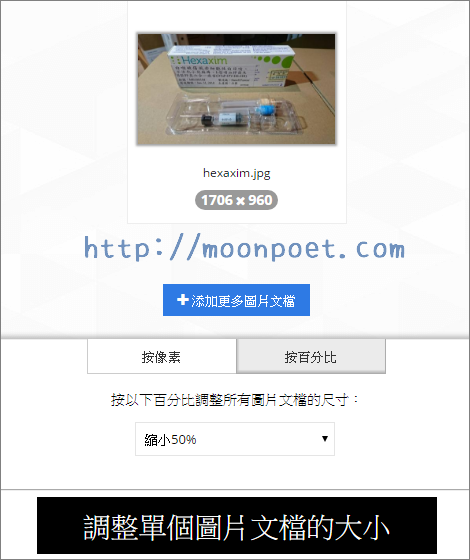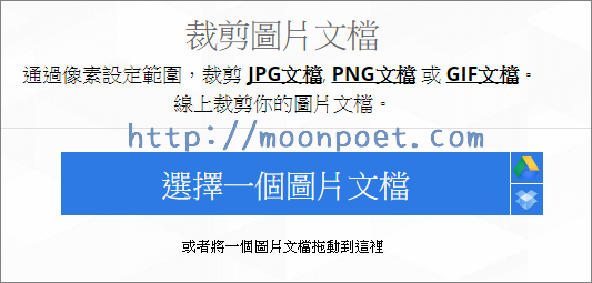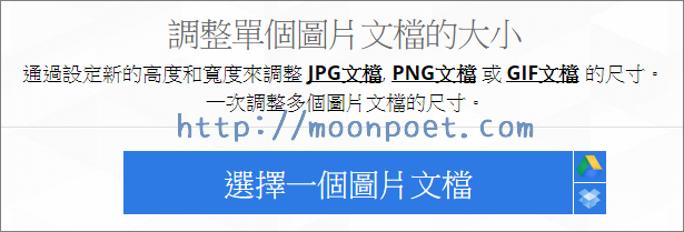 ▼ 第二個功能是調整圖片的大小,一樣用拖曳或是點擊藍色按鈕上傳。