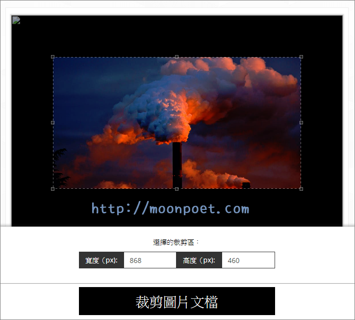 ▼ 裁切能以滑鼠拖曳虛線框或是直接在下方選擇固定尺寸。