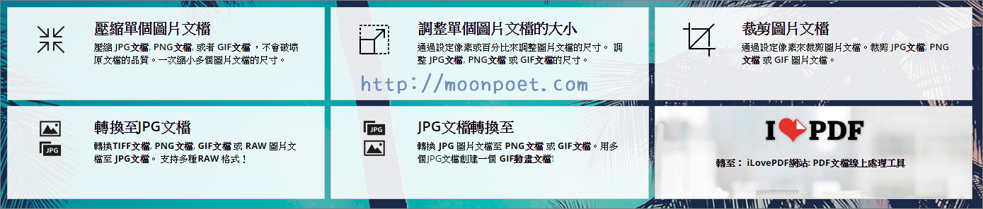 許多人越來越不喜歡在電腦裡安裝軟體,也因為雲端的技術越來越成熟,讓我們能在雲端完成許多原本必須透過電腦軟體才能完成的事情,今天要介紹的iLoveIMG就是一款線上圖像編輯服務,它提供我們線上壓縮圖檔、調整圖片大小、裁剪圖片尺寸與轉換檔案格式,都是非常實用且常用到的功能唷。