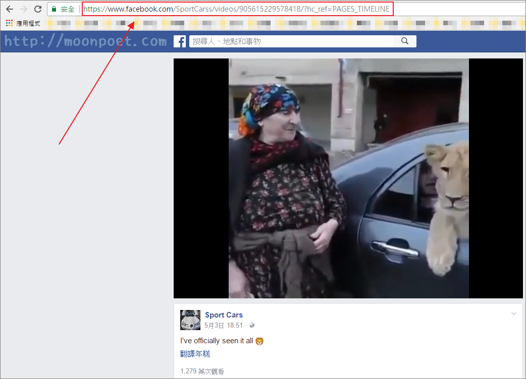 ▼ 首先請進入您想下載的臉書影片頁面,同時複製影片的網址。