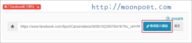 ▼ 把影片的網址貼到買噹噹裡,點擊取得影片連結。