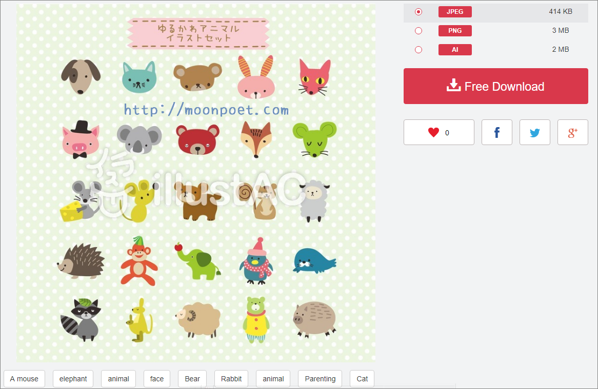 ▼ 許多人在製作一些圖片、卡片都會需要各種小圖來裝飾才會好看,illustAC 提供各種日系可愛風格的向量圖,而且除了免費下載之外,還能用在商業用途唷。