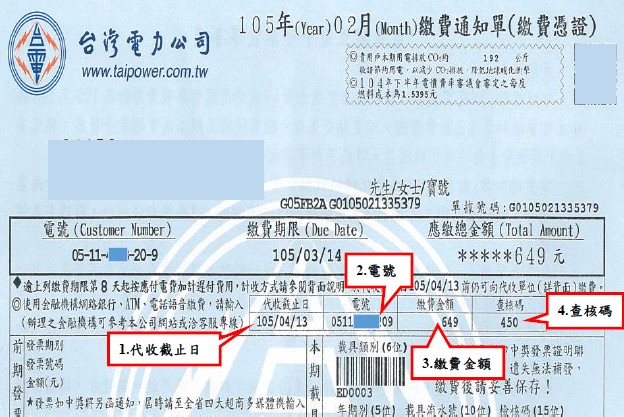 ▼ 電號要怎麼看呢? 請看帳號上的2號位置,那個就是電號。