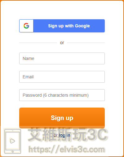 ▼ 這個工具比較麻煩一點,需要先註冊帳號,請先點我註冊,在這只要輸入名字與信箱、密碼後,點擊 Sign up 即可註冊帳號。