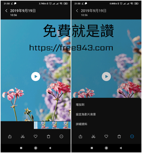 ▼ 下載完成後可使用手機的相簿開啟瀏覽,長按影片會出現選單,選擇設定為影片背景(依手機不同會有不同介面呈現)。