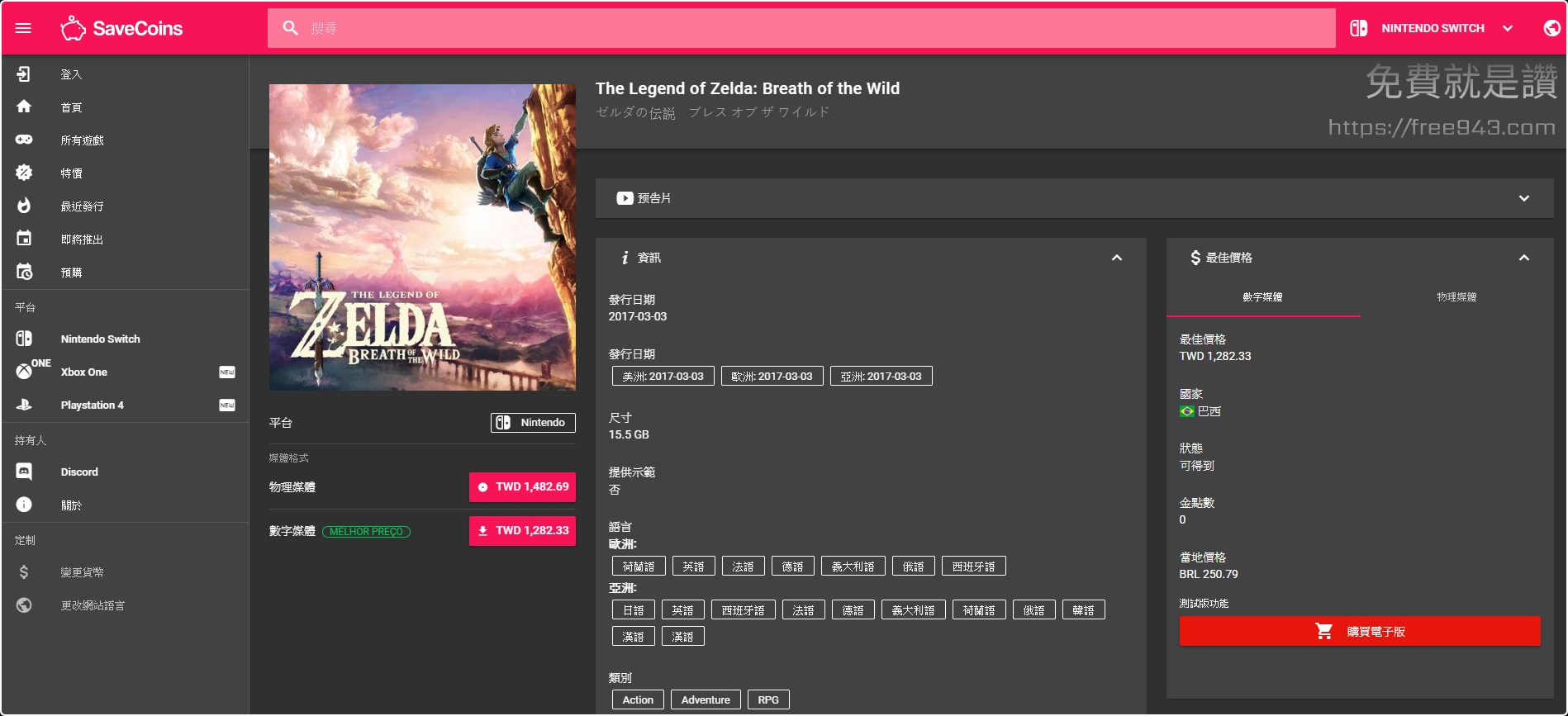 數位遊戲已經成為現今趨勢,我們可以透過雲端來買到比實體版還要便宜的數位版,缺點只是必須佔據遊戲機的儲存空間與不能轉賣,但其實對於值得收藏的遊戲,買數位版也是個不錯的選擇,今天要介紹的服務就是數位遊戲比價網 SaveCoins,它提供我們搜尋PS4、XBOX與Switch三種平台的數位遊戲價格資訊,讓我們可以知道什麼平台有什麼遊戲正在特價中。
