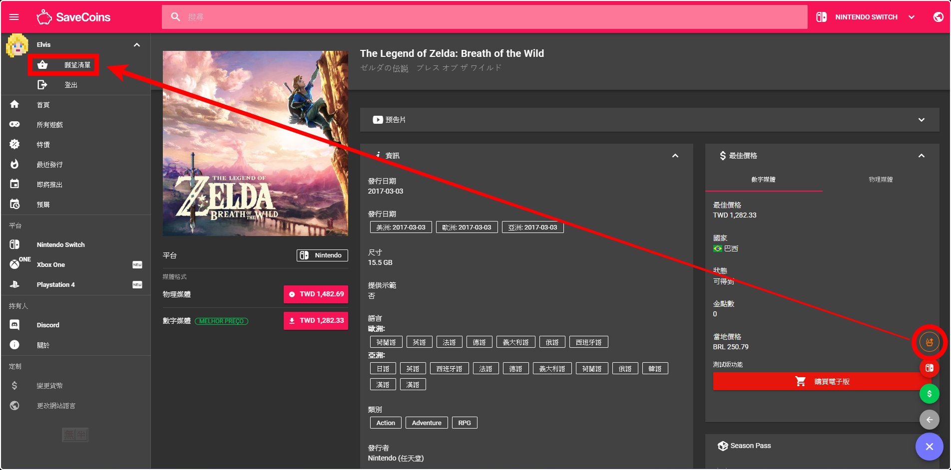 ▼ 在每個遊戲的介紹頁面中,我們還能把遊戲加入願望清單,以便日後追蹤特價資訊,如果要購買遊戲也能直接點擊右邊的購買電子版的按鈕前往遊戲平台購買。
