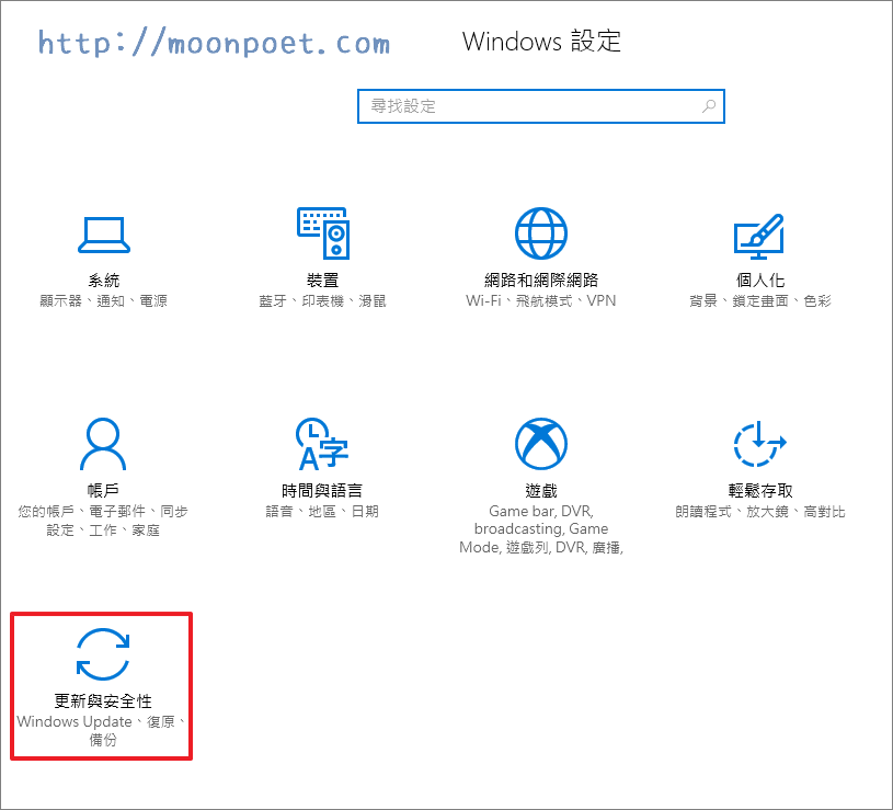 ▼ 進入控制台,選擇更新與安全性。