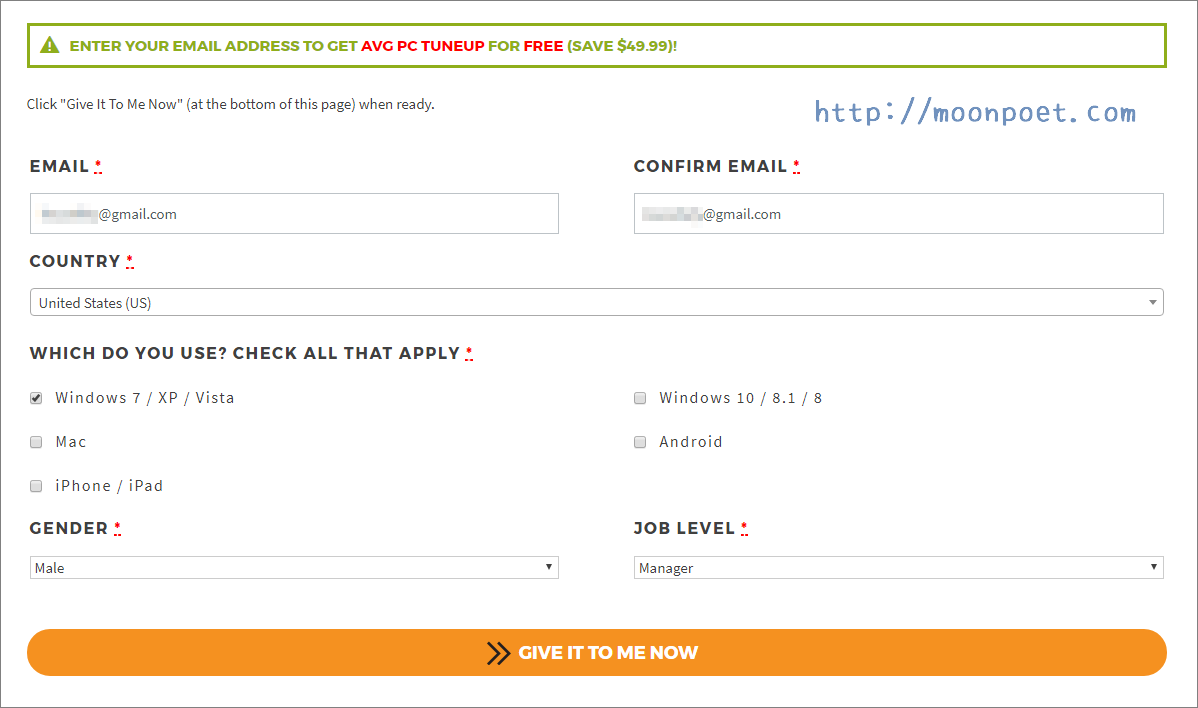 ▼ 輸入與勾選所有的資訊,像 E-mail,其他隨便填就行了。