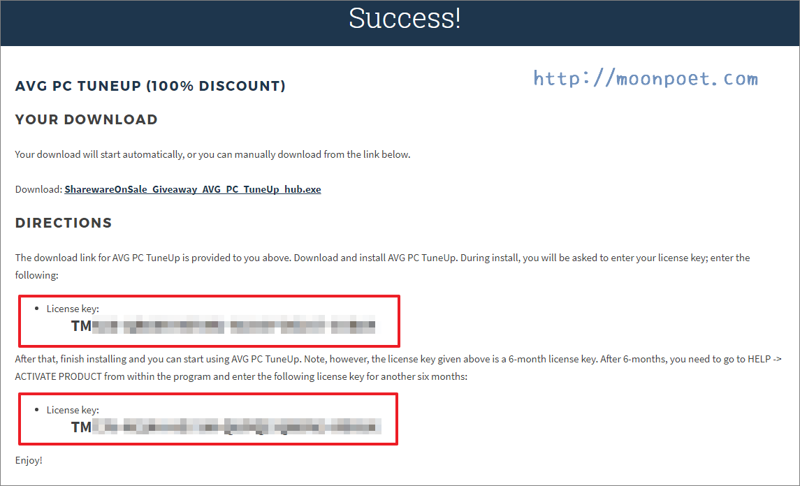 ▼ 接下來就會取得載點與序號,您可以直接點我下載安裝檔。