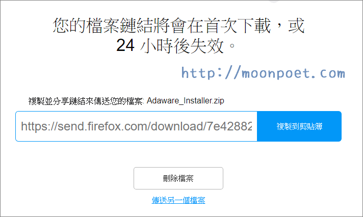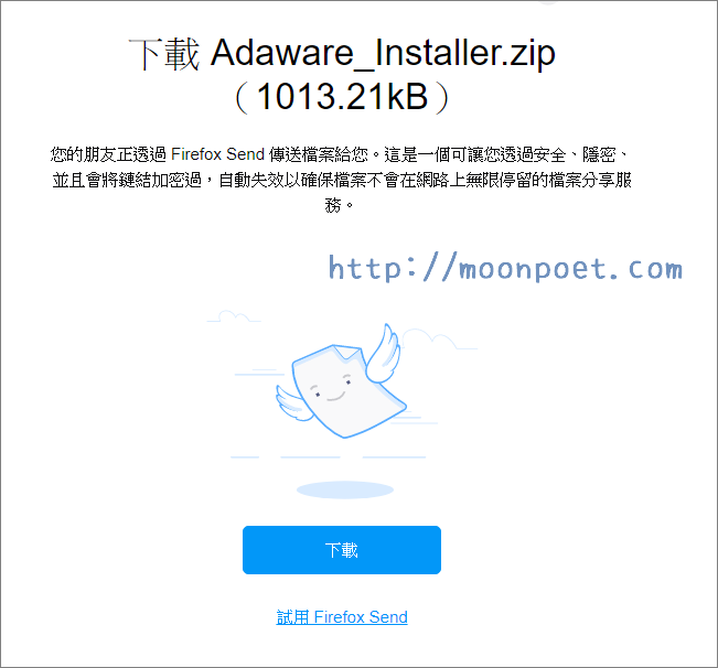 ▼ 下載介面長這樣,只要點擊下載後這個檔案就會失效並自動刪除。