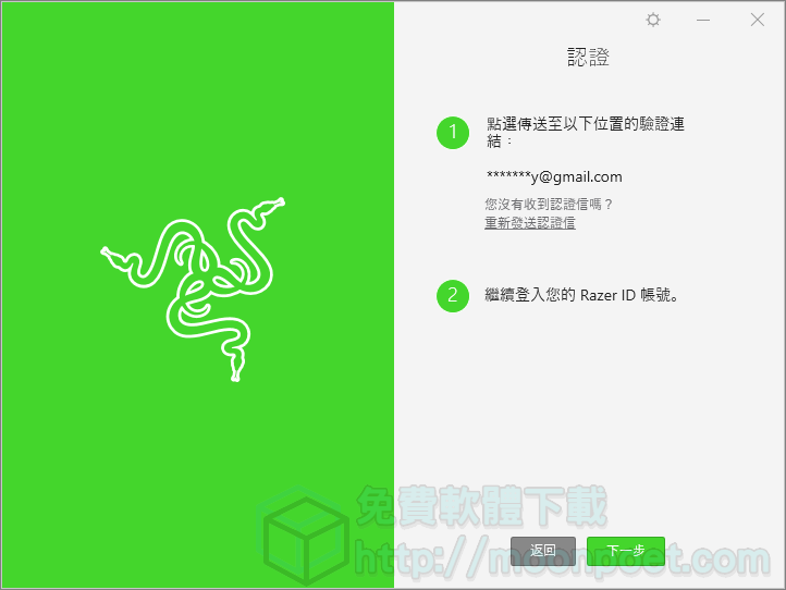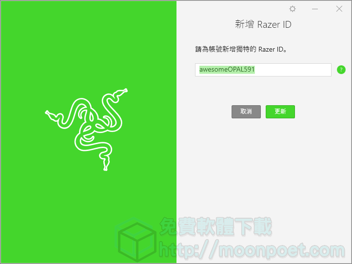 ▼ 接著回到軟體按下一步就會跳到這裡,輸入您想取的 Razer ID,隨便取即可。
