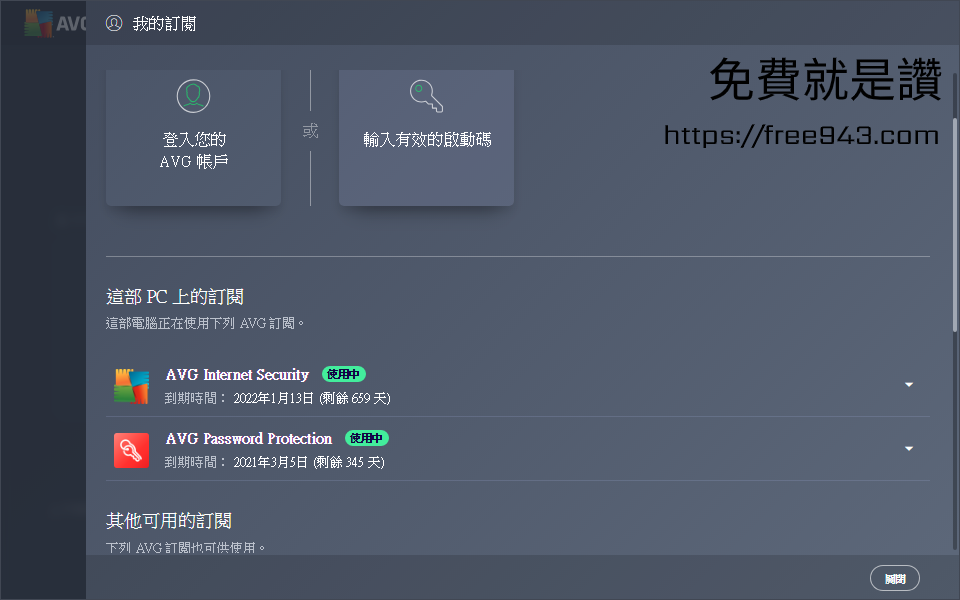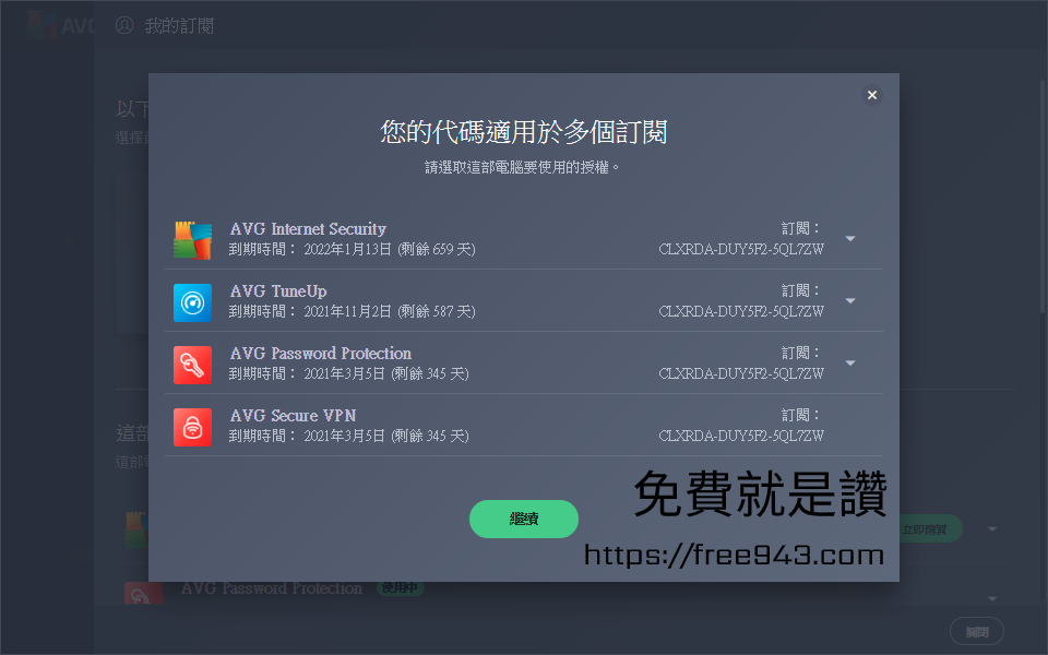 ▼ 這次的序號很佛心,直接送你快兩年的授權訂閱,還附帶其他AVG的工具一併讓您使用。