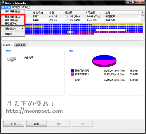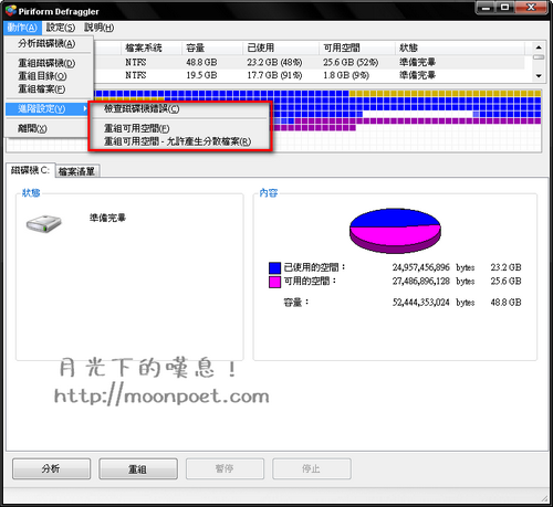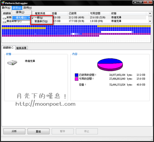 ▼ 而且它可以選擇重組時的優先權,如果您不想使用全部系統資源重組的話就選擇背景執行吧。