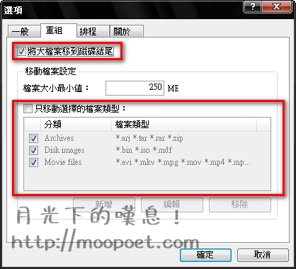 ▼ 它可將大型檔案移至磁碟結尾,更可以選擇大型檔案的類型。