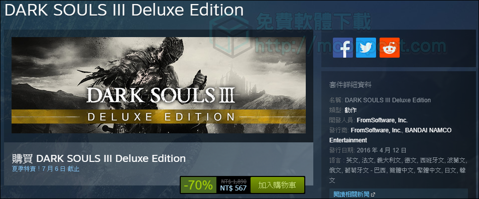 ▼ 黑暗靈魂3,這款很容易一直死一直死的動作硬派遊戲,相信是讓許多人第一次摔搖桿的遊戲,但引入人勝的劇情與難到不行的遊戲方式,都是吸引許多動作遊戲愛好者收藏的原因之一,現在只要567元。