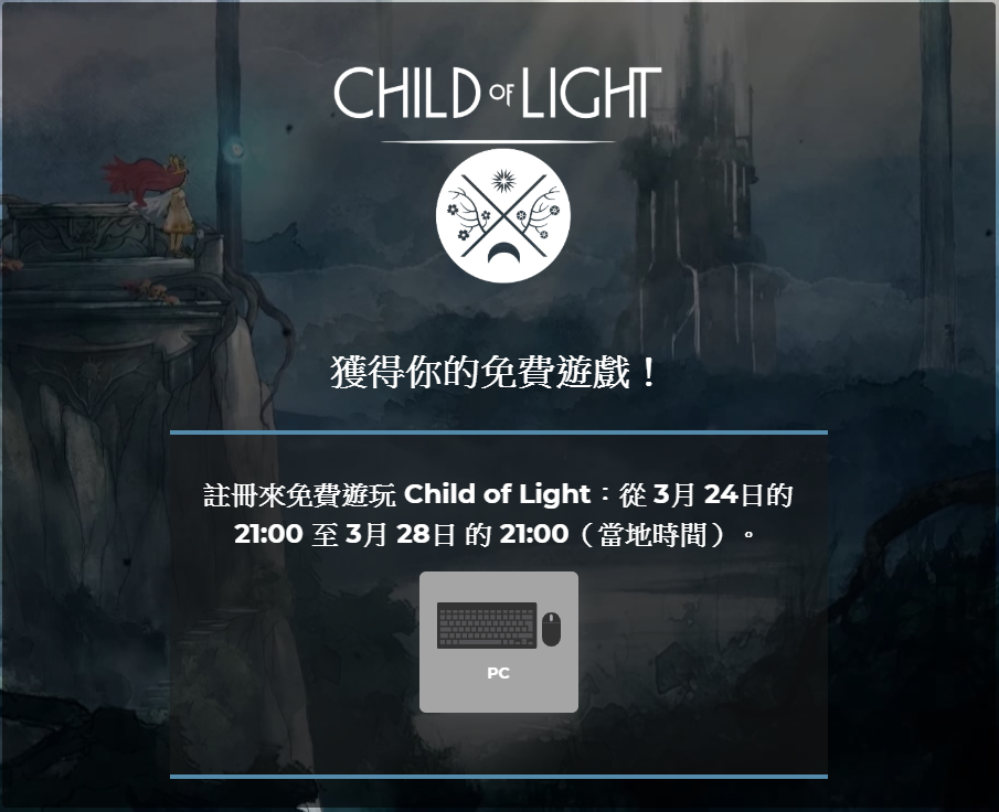 Ubisoft 是一家擁有許多大作的遊戲開發商,像是知名的刺客教條與虹彩六號等大作,都是由育碧所出品的,而育碧其實經常會贈送玩家許多免費的遊戲,像本次的光明之子 CHILD OF LIGHT 就是本次的贈品,光明之子是一款橫向捲軸式的冒險遊戲,玩者在遊戲中扮演一位被帶離家中的小女孩歐若拉,為了找到回家的路,她必須找回被夜之女王藏匿起來的太陽、月亮和星星。還等什麼呢? 趕快把光明之子免費下載回家吧。