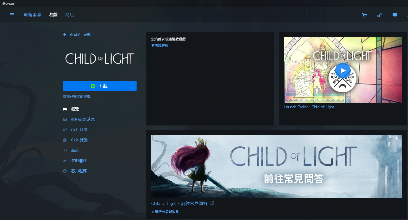 ▼ 安裝平台完成後請執行並用帳號登入,接著點擊左上方的遊戲頁籤,選擇 CHILD OF LIGHT,並點擊下載按鈕進行下載安裝,完成後即可遊玩。