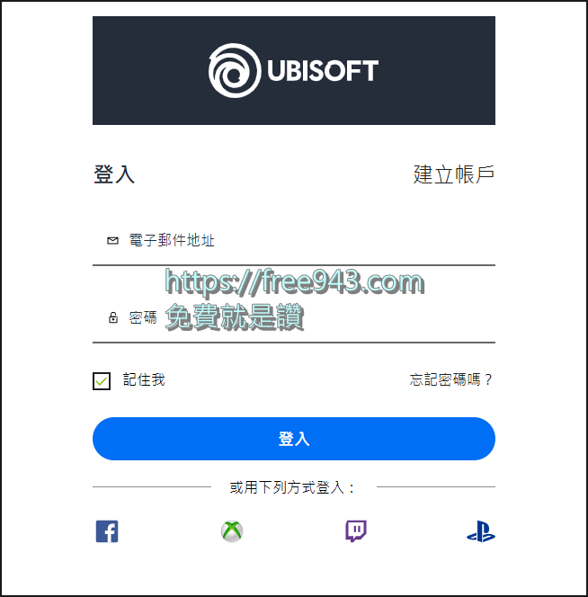 ▼ 這裡會要求您先進行登錄的動作,請使用您的Uplay帳號進行登錄,如果沒有帳號也能使用fb、XBOX、Twitch或PS帳號進行連動登錄。