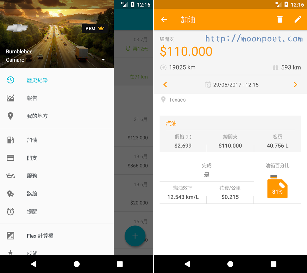 ▼ 各種開支選項應有盡有,當然計算油耗也是很基本的功能唷。