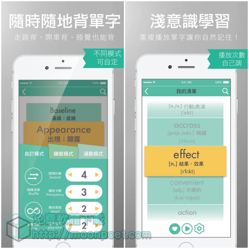 ●連續播放功能:大幅減少操作手機的次數,與此同時可搭配其他工具書一起複習,事半功倍!