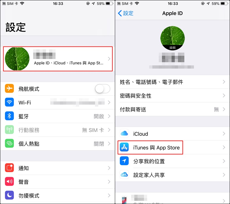 ▼ 請先進入手機的設定功能表,接著點擊右圖中的「iTunes 與 App Store」。