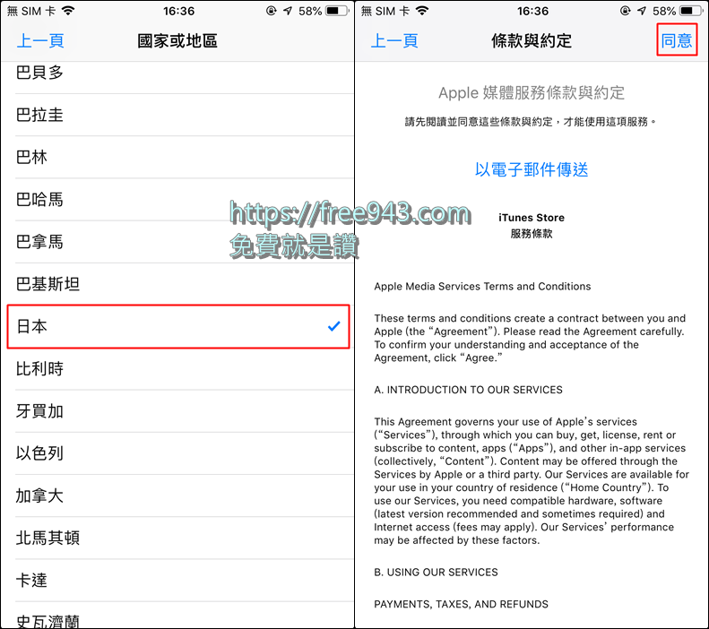 ▼ 接著請將國別移到日本,點擊後請點擊同意,如果要切換其他國家就直接選擇即可。