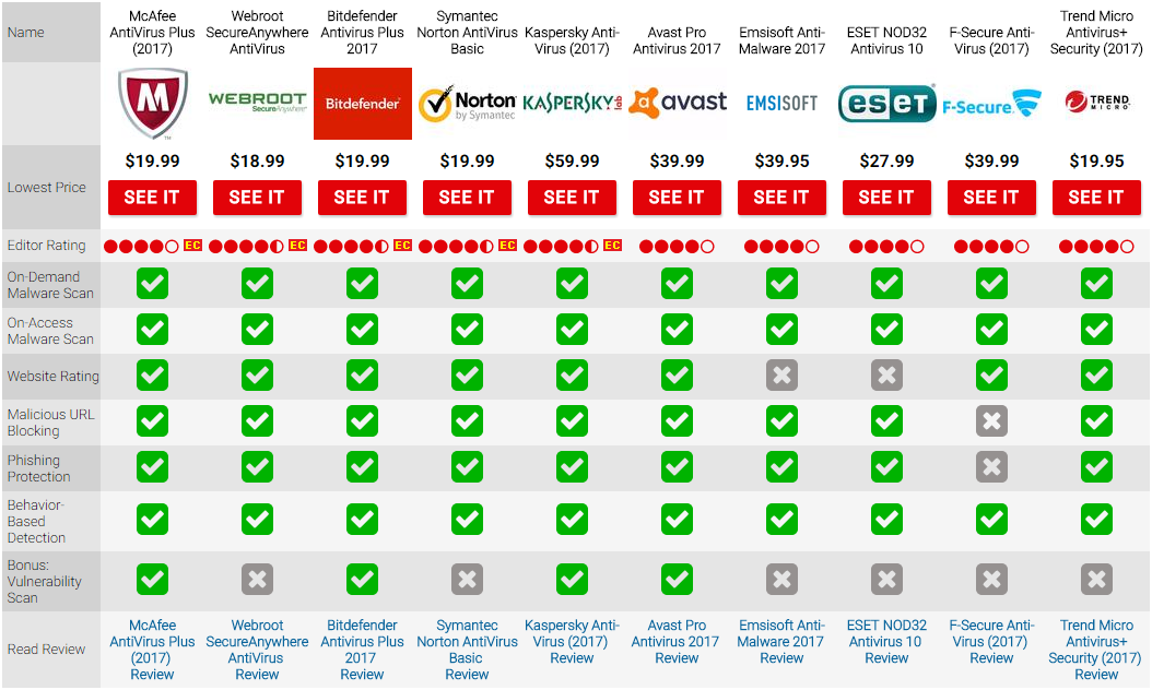 現在網路上病毒一堆,說真的電腦沒裝防毒軟體就像是裸體在街上走著,非常危險,雖然說防毒軟體是必備的,但也不是說隨便找一套來裝就有用,所以國外的電腦資訊網站特別針對目前市面較知名的防毒軟體進行評比,針對主要的防護項目進行比較測試評分。測試對象是使用付費版防毒軟體並非免費版的部份。